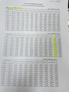 2022年12月時点(タイの郵便局の価格が変更された場合には、それに準じた実費をご請求致します。)